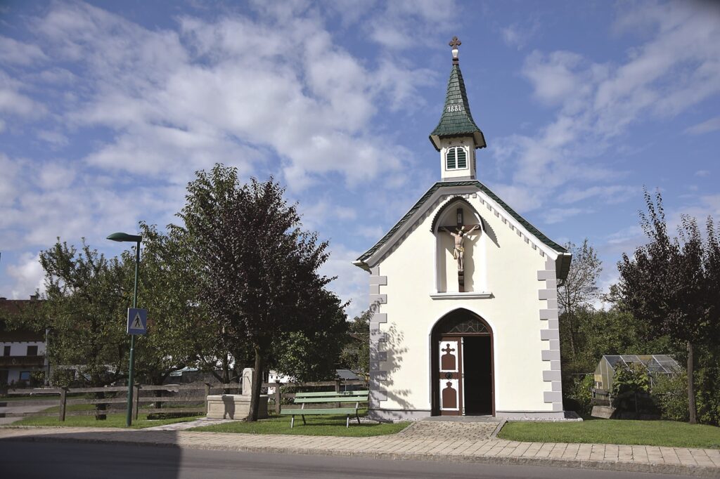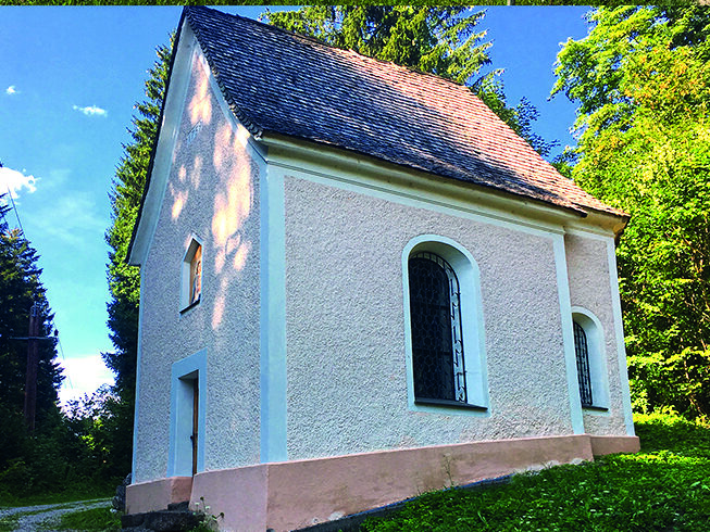 Lourdeskapelle: Die Kapelle wurde 1887 eingeweiht und beherbergt besonders anmutige Figuren der Lourdesmadonna und heilige Bernadette in der Grotte (Martina Pfandl).